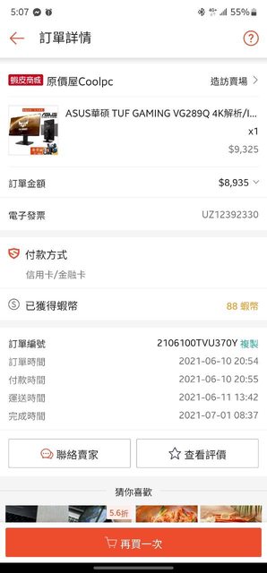 ◎硬體型號: ASUS TUF Gaming VG289Q