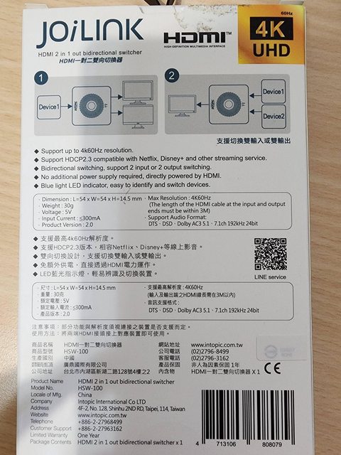 2.Intopic HDMI一對二雙向切換器