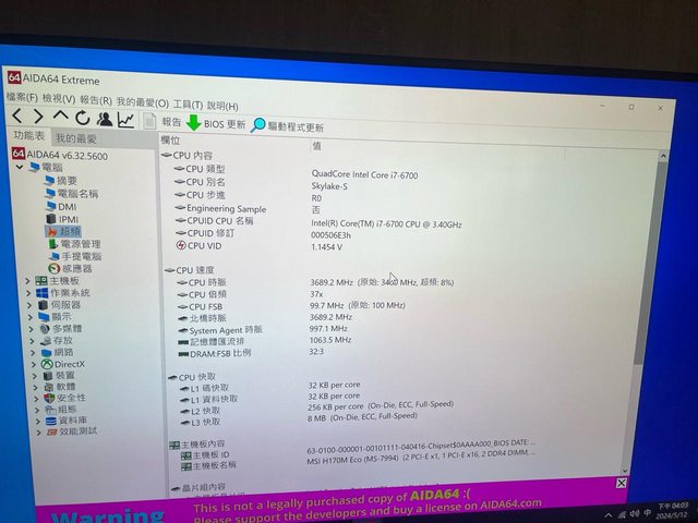 ◎硬體型號: 1.I7-6700跟主版跟16G記憶體含散熱器
