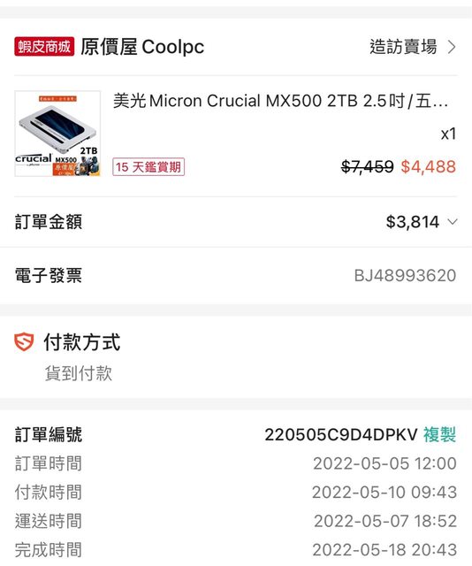 標題[賣/台北/皆可] 8t硬碟 mx500 ak620 3080tuf