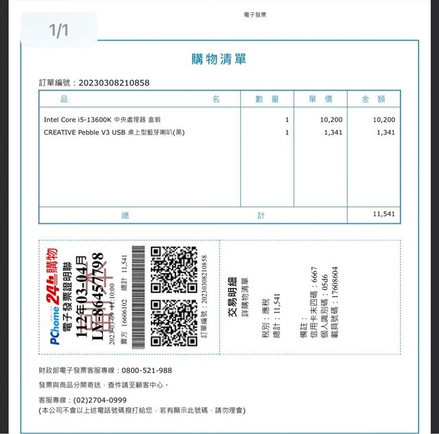 CPU:2023/03/09 PCHome購入(有盒有發票)3年保