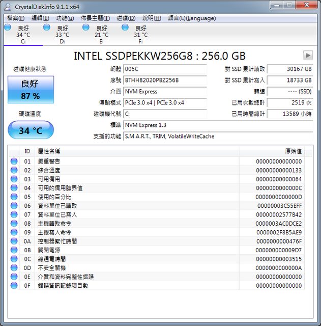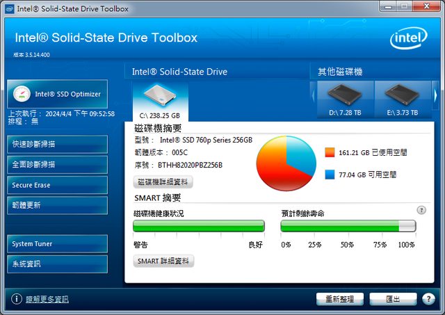 SSD: Intel 760p系列 256GB M.2/2280/PCIe*3.0x4