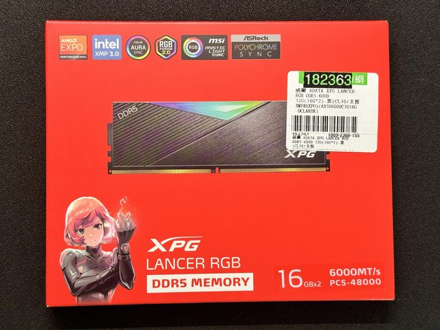 ◎硬體型號: ADATA威剛 黑 Lancer RGB 16GBx2 DDR5 6000 CL30
