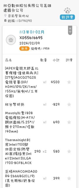2)2024.02.09欣亞購入,除錯用只上機過1次,終身保固。