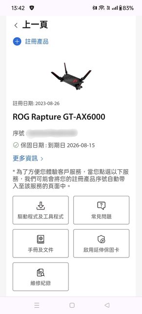 ◎硬體型號: ROG Rapture GT-AX6000 路由器