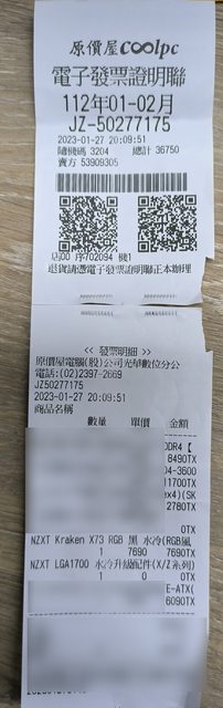 1. 購買日2023/01/27, 保固到2030/01/27(憑發票7年)