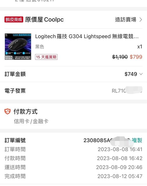 滑鼠:羅技g304 購買 (2023/8/8購買)