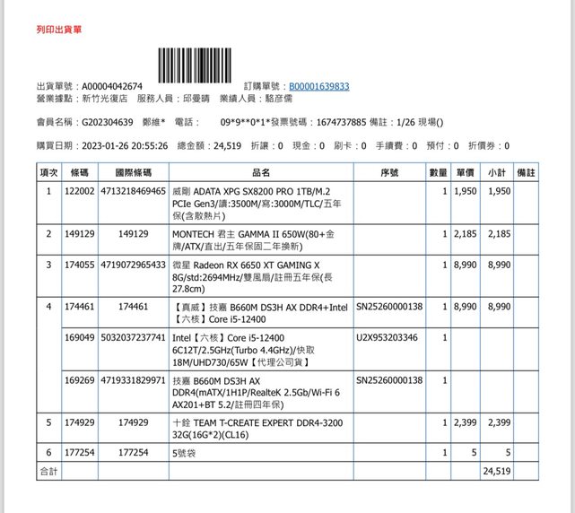 1.購買日期 :2023-01-26 欣亞新竹光復店