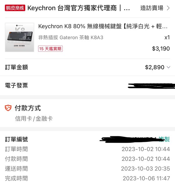 2023/10/2於蝦皮代理商購買 保固到2024/10/1