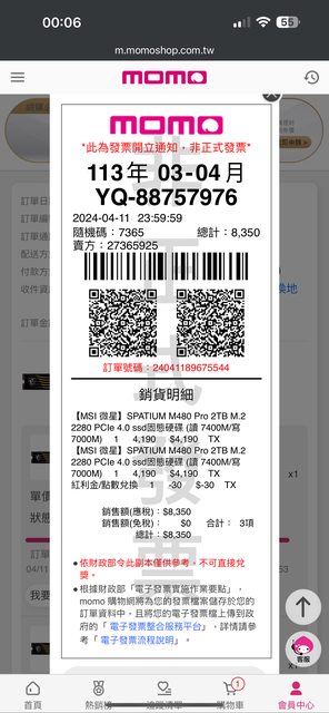 ◎硬體型號:MSI M480 Pro 2TB M.2 PCIe 4.0 SSD