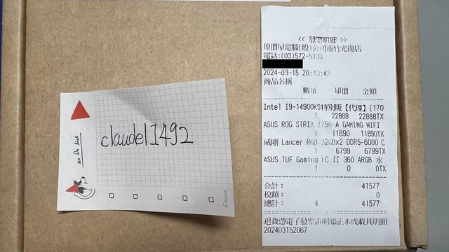◎硬體型號:1. INTEL i9-14900KS