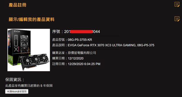 ◎硬體型號: EVGA RTX3070 XC3 ULTRA GAMING