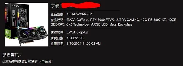 標題[賣/花蓮/皆可]EVGA 3080 FTW3 ULTRA GAMING