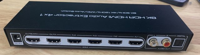 HDMI 2.1 4進2出(聲音跟視訊分離),一邊接電視(支援Dolby vision, HDR, 4K 120Hz