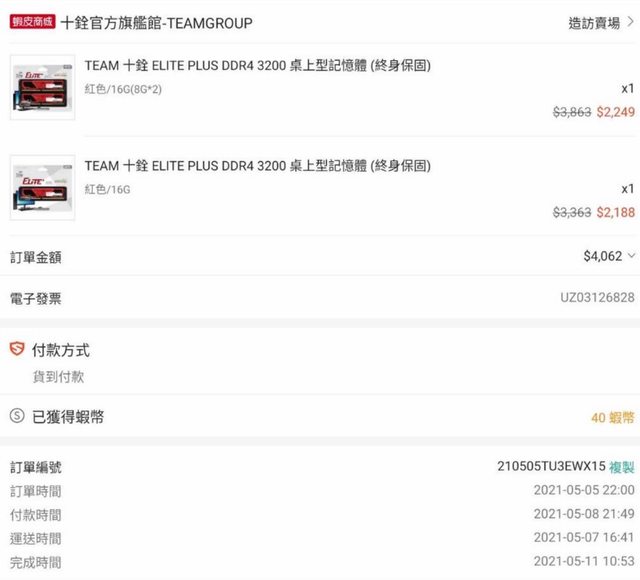 2.十銓2021五月購入,終保