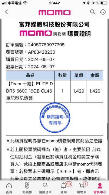 ◎硬體型號: Team 十銓 ELITE DDR5 5600 16GB CL46 筆記型記憶體