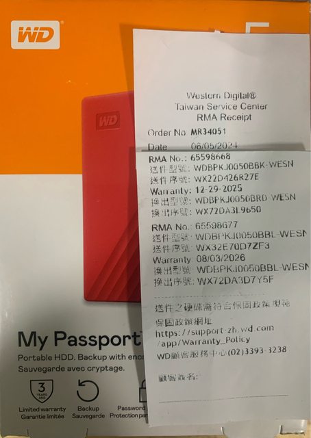 ◎硬體型號:WD my passport 5TB 行動硬碟 (紅色)WDBPKJ0050BRD WESN