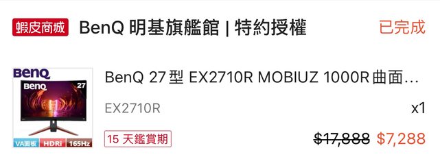 標題[賣/新竹/面交] BenQ 27吋 EX2710R 曲面螢幕