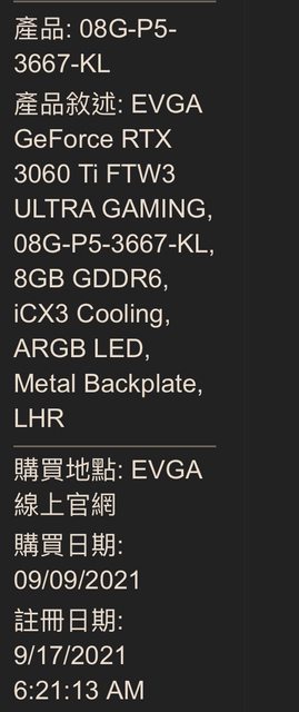 ◎硬體型號:EVGA GeForce RTX 3060 Ti FTW3 ULTRA GAMING