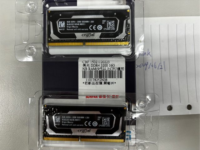 2.RAM: 美光 DDR4-3200 8GB X2 筆電記憶體