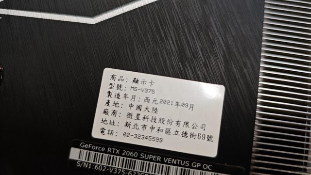 ◎硬體型號: MSI rtx 2060 super ventus gp oc