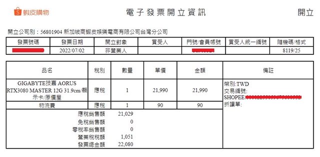 ◎硬體型號:AORUS RTX3080 Master 12G (禁止販售未拆封之物品,贈品、獎品、RMA品