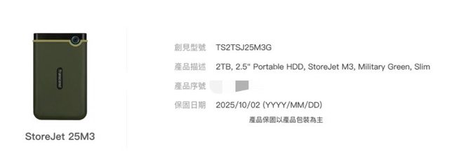 標題[賣/全國/郵寄] 創見 隨身硬碟 2TB