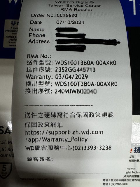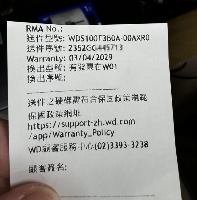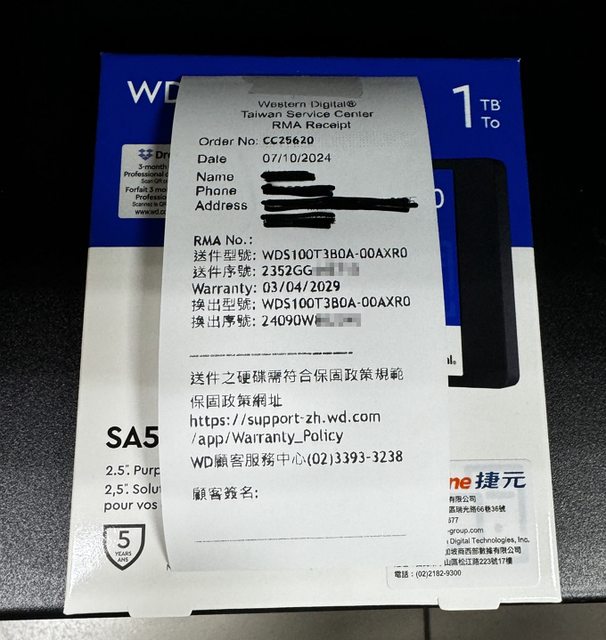 請保留相關單據,後續保固找捷元代理商或WD即可