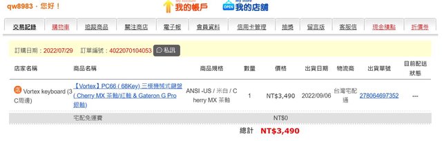 標題[賣/桃園雙北/面交] VORTEX PC66(68Key)鍵盤