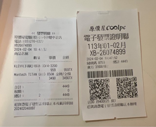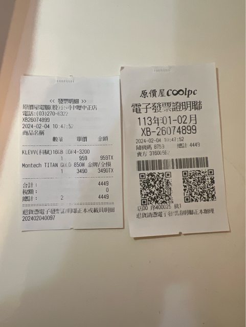 1. CPU 今年2/9向其他賣家單獨購買CPU,貨品來源為原價屋搭售組合,該賣家之原價屋