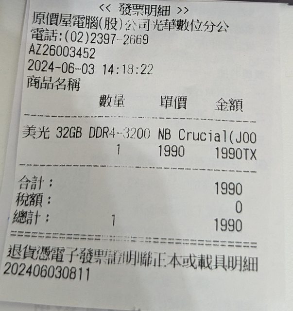 ◎硬體型號: 美光 筆記型 DDR4-3200 32GB 記憶體 x1