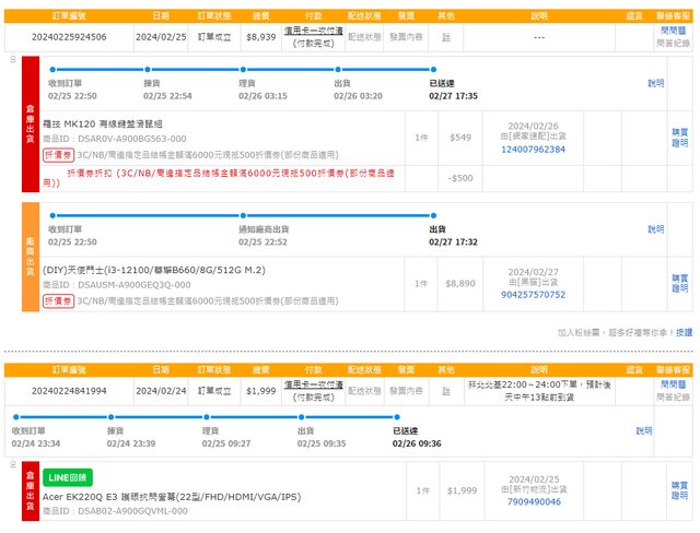 ◎其他 : (硬碟、機殼、電源、鍵鼠、光碟機、網路卡、音效卡、其他週邊, etc.)