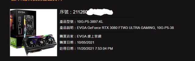 標題[賣//] EVGA RTX3080 FTW3 10g