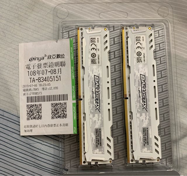 ◎硬體型號: 美光 ballistix ddr4 3200 8G*2 白色 售出