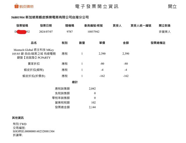 1. 2024/7/7 自 蝦皮 PCPARTY 購入