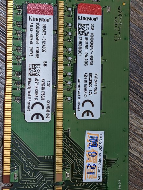 記憶體:金士頓8G*2 DDR4-2400(KVR24N17S8/8)