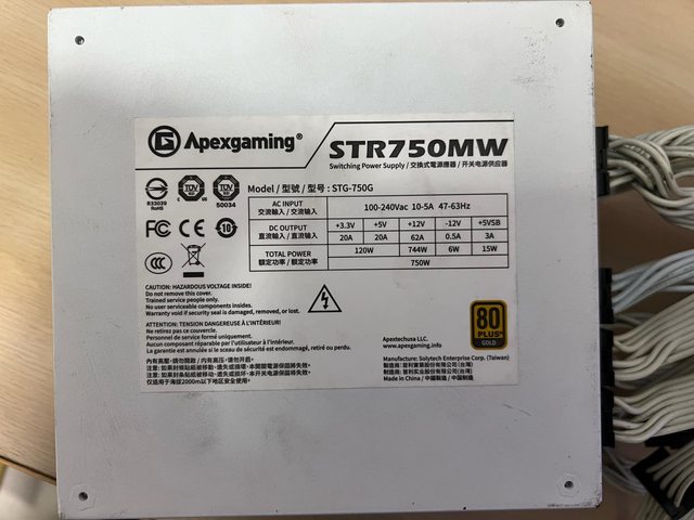 3.首利750W 金牌全模組 MB*1 CPU*1 8PIN GPU*2 32PIN SATA*3 12個口 大4PIN*1 4個口