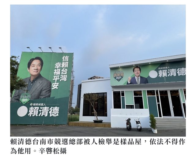 樣品屋作為競選總部,今年輪到賴清德使用,可見是「綠能、其他人不能」。