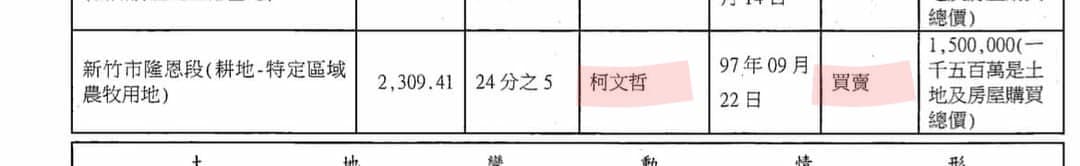 → zeebr: 48年次的柯在97年時以買賣名義登記取得, 111.71.80.42 12/19 19:05