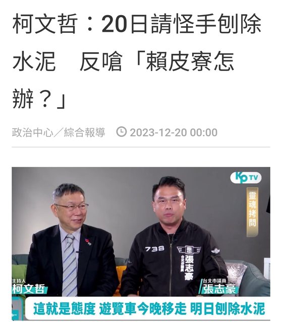 → orinsinal: 柯粉說柯文哲說要拆 就有拆。靠 不就223.140.72.58 12/20 16:06