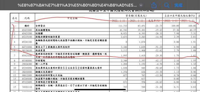 台灣2023年對中出口前5大產品類都沒ECFA品項