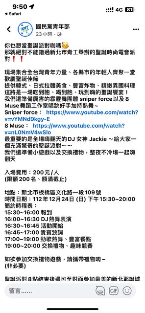 標題[討論] 清流文→KMT青年部活動
