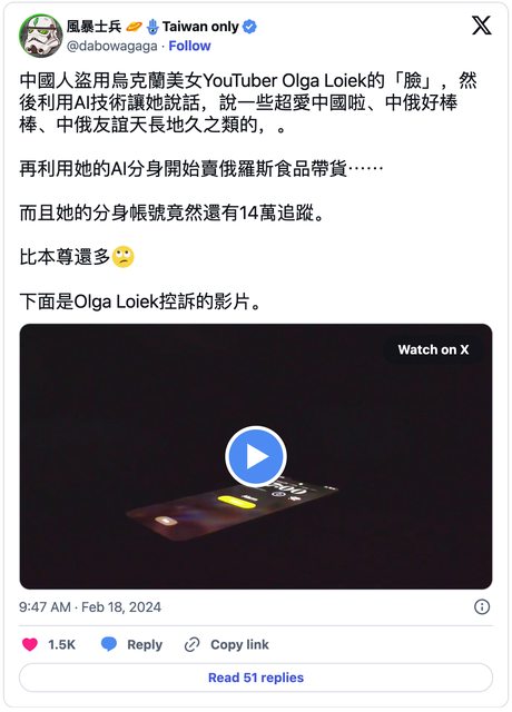 標題[新聞] 烏美女遭AI盜臉變俄五毛 本尊痛批北京是造