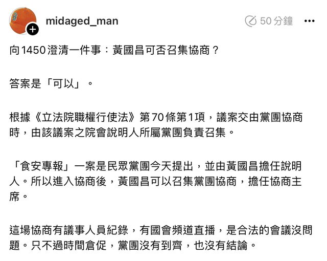 → chx64: 出來主持黨團協商都說得過去 那黃國昌是?175.182.143.121 02/21 02:42