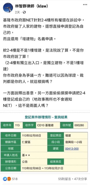 噓 gogen: gfabbh 謝市府質移林不登記有問題,那謝市 1.200.152.151 02/21 15:37
