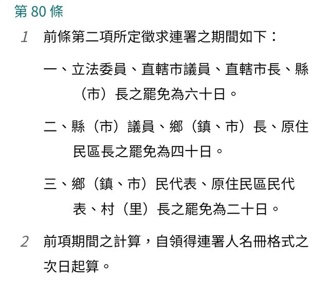 連署期限六十日