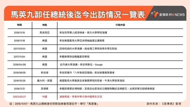 → CavendishJr: 菱傳媒有整理過馬卸任後出國的地點 27.53.245.23 10/08 09:54