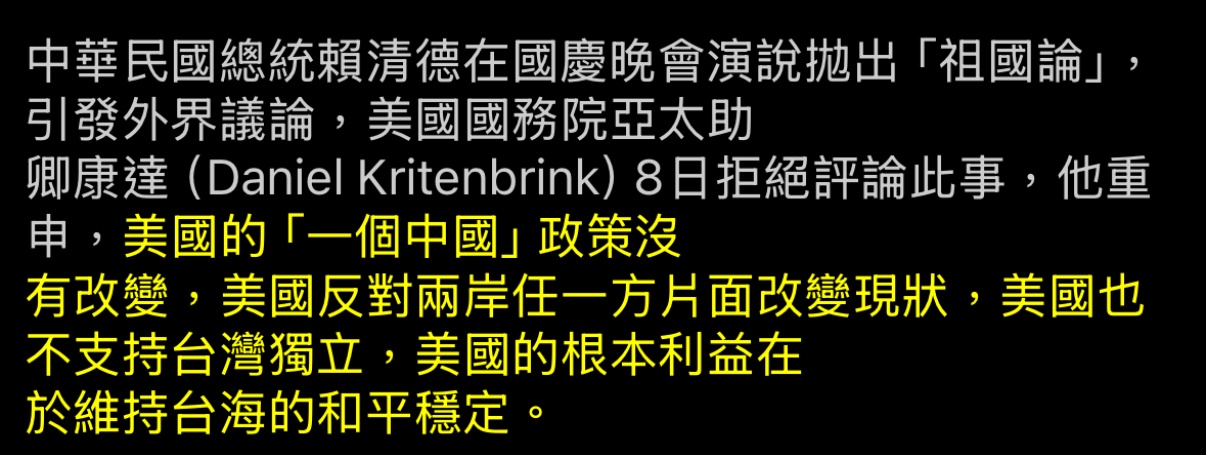 → star12614: 那老美幹嘛不直接講反對台獨就好wwwww 118.231.177.7 10/09 07:39