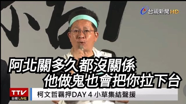 二七七二阿北,為他保留國慶大典的位置,建議民眾黨白八立委,帶著阿北的人型看板,放