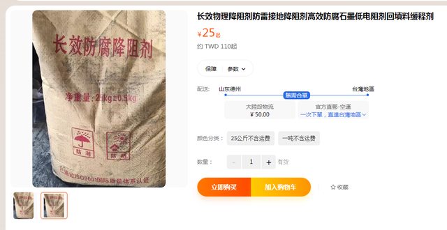 電阻率 1歐姆 25公斤/1包 ¥40 约 TWD 176